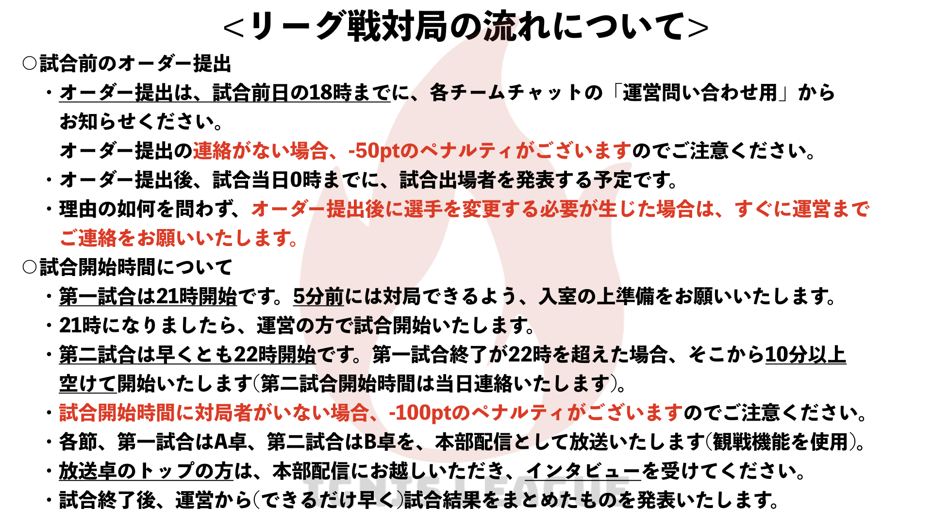 | ドラフト | 2024/10/29(火曜日)21時~ | |